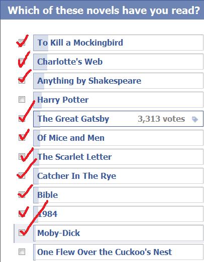 I love the fact that the Bible is included on this list, where it belongs. Now, what about the Qur’an, the Book of Mormon and Dianetics? I suppose they didn’t want to risk it. (My answers are in red.)