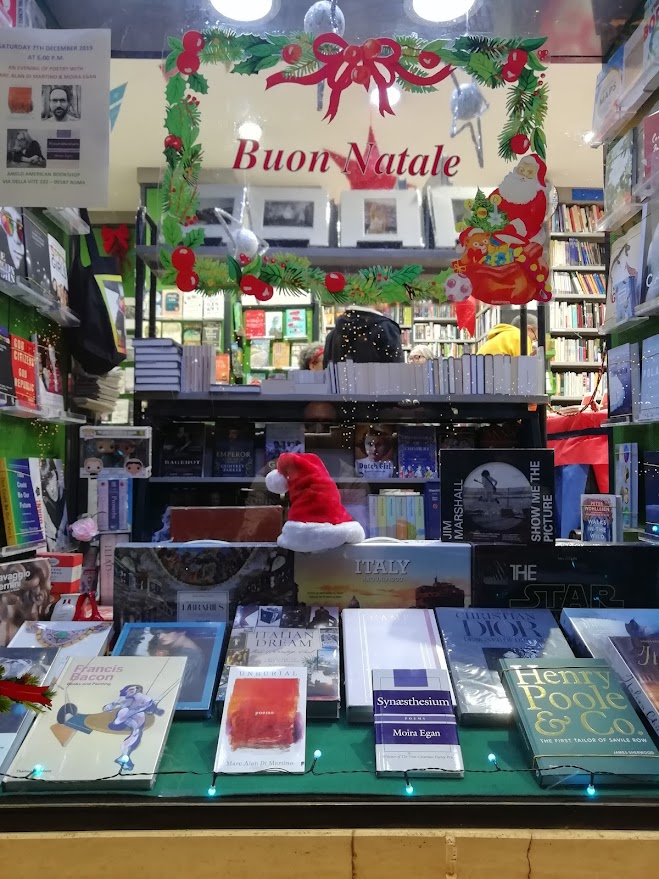 I remember the evening when we had just closed up and were turning off the lights, and two ghostly faces appeared at the door. It was poet Moira Egan and her husband, the translator Damiano Abeni. I had to tell them to come back during opening hours. We became friends over time, though, and I interviewed them for The American in 2009. When my first collection Unburial came out, Moira was gracious enough to partner with me for the book launch at AAB (photo above).