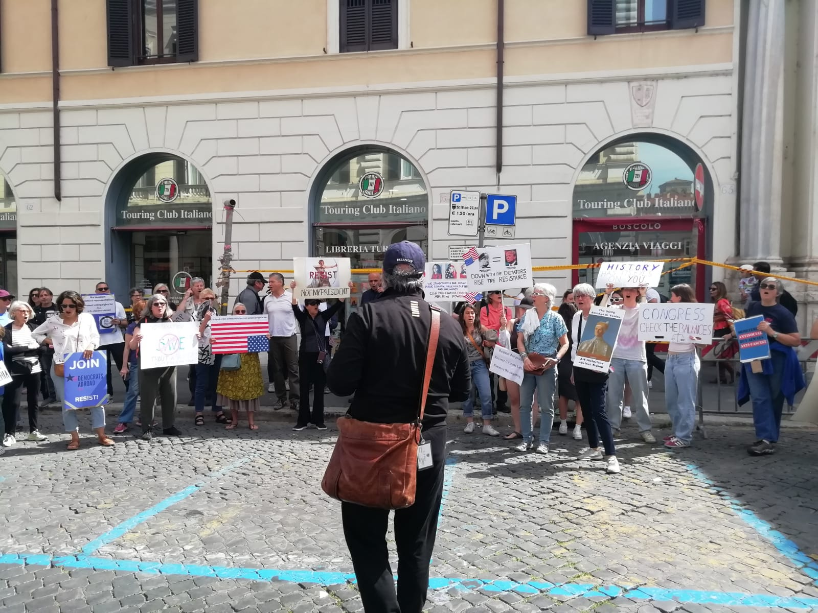 Democrats Abroad protesting in Piazza S.S. Apostoli, Rome – May 3, 2025